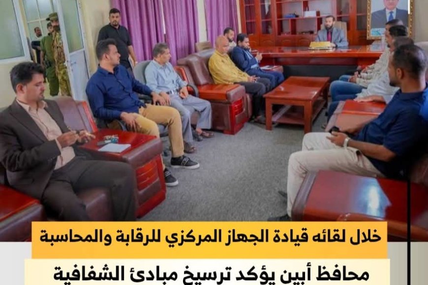 شمسان بوست | أبين: التقى محافظ محافظة أبين الدكتور مختار بن الخضر الرباش الهيثمي صباح اليوم، قيادة وموظفي الجهاز المركزي للرقابة والمحاسبة بالمحافظة، في إطار تعزيز التعاون المشترك وتفعيل دور الأجهزة الرقابية في حماية المال العام ومكافحة الفساد .وخلال اللقاء، شدد المحافظ الرباش على أهمية ترسيخ مبادئ الشفافية والنزاهة في مختلف المرافق الحكومية، مؤكدا